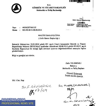 رییس گمرک ترکیه در گزارشی که 11 ماه پیش بسته و یکی از این مدارک به صورت ناخواسته در اختیار یکی از رسانه ها قرار گرفته،از روابط تجاری بابک زنجانی و رضا ضراب،تاجر ایرانی که متهم به پولشویی در ترکیه است،پرده برمی دارد.