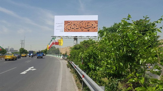 روزنو :شهرداری تهران چند سالی است با نمایش کپی اثر های هنری ایرانی و جهانی در جهت زیبا سازی شهر و رساندن پیام های فرهنگی کار زیبایی انجام می دهد که قابل تقدیر است. اما در یکی از این کار های فرهنگی،شعری که روی یکی از بیلبورد های سطح شهر درج شده اصلا قابل خواندن نیست. البته واضح است که این موضوع متوجه شهرداری تهران نیست اما بهتر بود متن این شعر برای مشخص بودن و مفهوم بودنش بصورت دیگری نیز کنار این اثر هنری نوشته می شد.