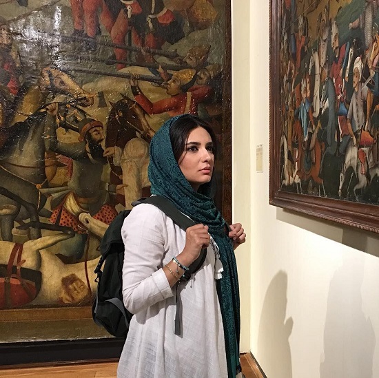 لیندا کیانی در حال بازدید از یک گالری نقاشی
