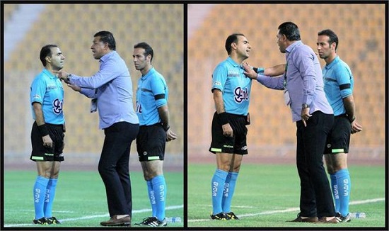 سرمربی نفت با آن تیپ عجیب و غریب، بارها به داوری و تصمیمات احمد صالحی اعتراض کرد و باید اعتراف کرد که در بیشتر صحنه ها هم حق با او بود.