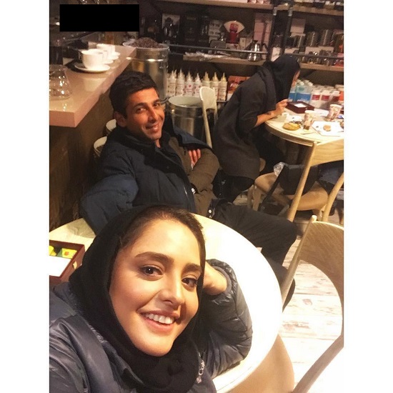 سلفی دو نفره و صمیمی نرگس محمدی و حمید گودرزی در یک کافه !