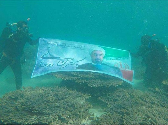 قبل از برگزاری انتخابات، گروهی از غواصان عکس دکتر حسن روحانی را به زیر آب های خلیج فارس برده بودند.