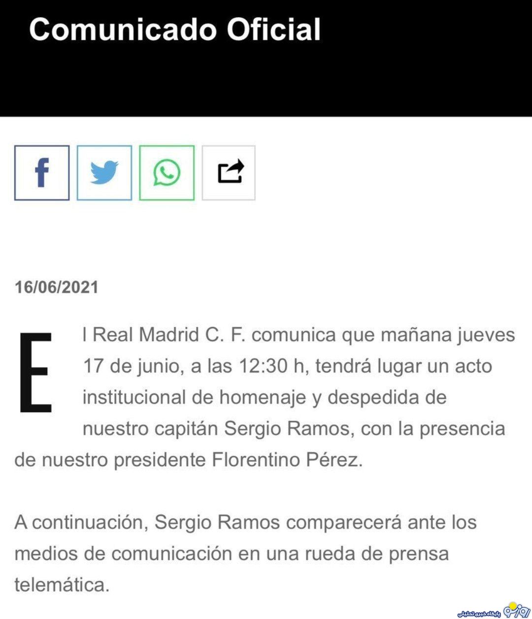 روزنو :باشگاه رئال مادرید جدایی سرخیو راموس را تایید کرد.