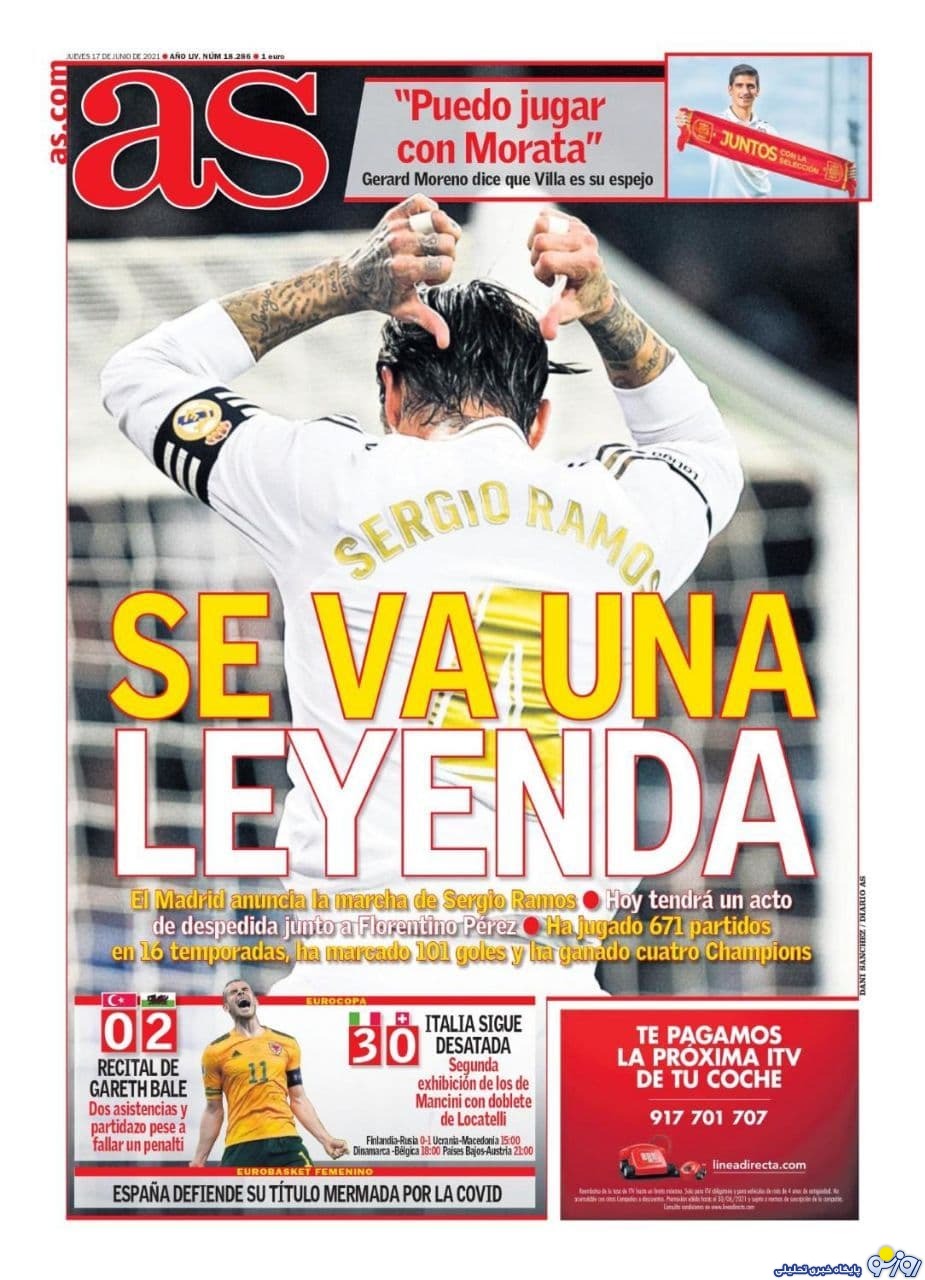 روزنامه آاس هم از این عنوان استفاده کرده است: «جدایی اسطوره» این روزنامه هم در وصف جدایی راموس نوشت: «مادرید جدایی سرخیو راموس را تایید کرد. او امروز با همراهی فلورنتینو پرز از باشگاه خداحافظی خواهد کرد. او در طی ۱۶ سال ۶۷۱ بازی برای رئال انجام داد و ۱۰۱ گل زد، راموس ۴ لیگ قهرمانان بالای سر برد.»