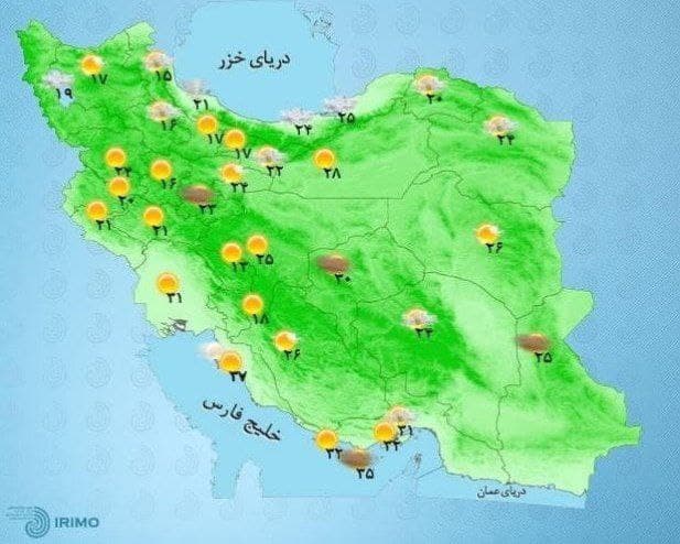 رفیعی گفت: حداکثر دما در تهران امروز ۳۵ درجه بالای صفر و حداقل دما ۲۲ درجه بالای صفر خواهد بود.