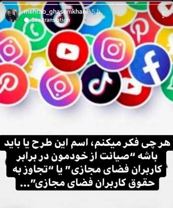 استوری قاسم‌خانی درباره صیانت از فضای مجازی
