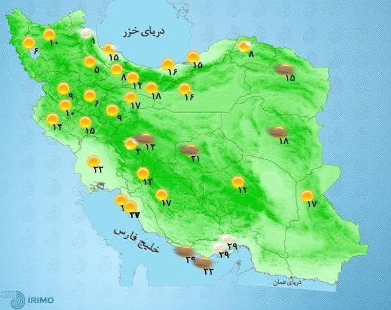 پنج‌شنبه و جمعه در کل سواحل دریای خزر، شمال آذربایجان غربی و آذربایجان شرقی و در برخی مناطق خراسان شمالی بارش باران گاهی وزش باد پیش‌بینی می‌شود.