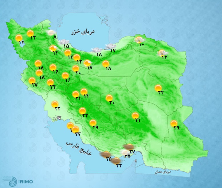 نقشینه درخصوص آخرین وضعیت جوی پایتخت گفت: برای تهران هم پیش بینی شده که امروز آسمانی صاف تا نیمه ابری داشته باشد. فردا غبار صبحگاهی و گاهی وزش باد شکل خواهد گرفت. بیشینه دمای امروز و فردا در تهران بیست و یک درجه پیش بینی شده و کمینه دما به یازده درجه خواهد رسید.