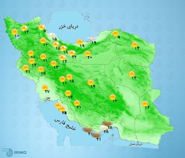 او درباره آب‌وهوای استان تهران هم گفت: آسمان تهران صاف تا قسمتی ابری همراه با غبار صبحگاهی گاهی همراه با وزش باد خواهد بود و بیشترین دمای تهران ۲۷ درجه و کمترین آن ۱۵ درجه خواهد بود.
