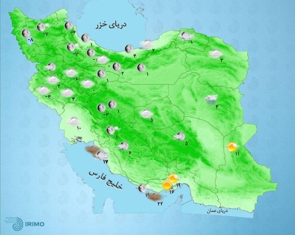 بر اساس تحلیل آخرین نقشه‌های پیش‌یابی هواشناسی، امروز سه‌شنبه در استان‌های سیستان و بلوچستان، شرق هرمزگان، کرمان، خراسان جنوبی و یزد، بارش باران، رعد و برق، وزش باد شدید، در مناطق مرتفع بارش برف و در بخش‌هایی از مرکز، شمال غرب، شمال شرق و ارتفاعات زاگرس مرکزی بارش پراکنده باران و برف پیش‌بینی می‌شود.