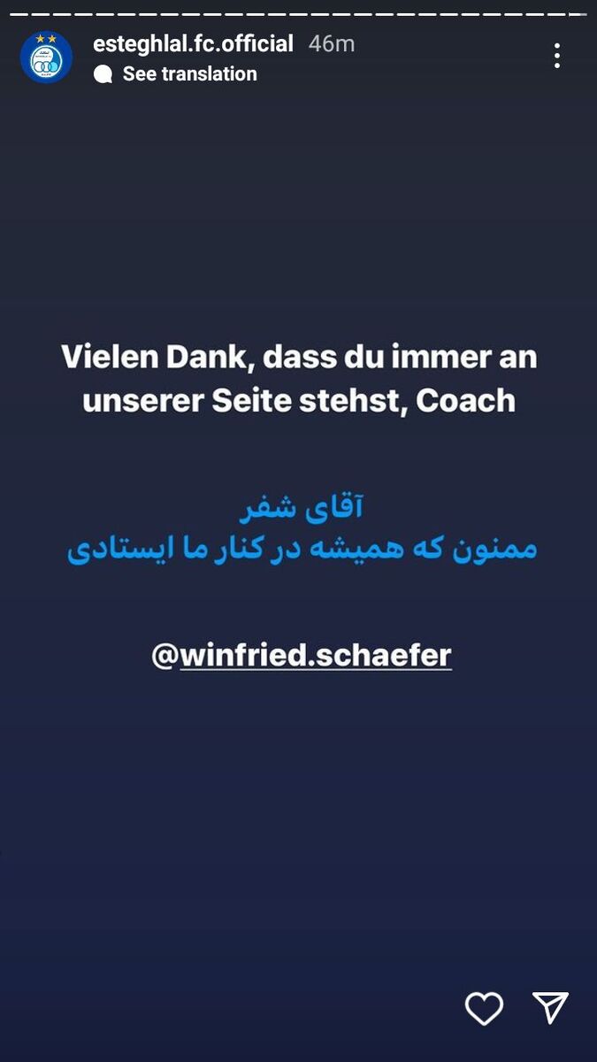پیام باشگاه استقلال برای وینفرد شفر