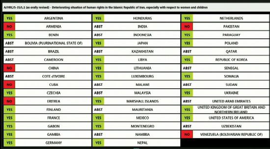 مینا محمدزاده:شورای حقوق بشر سازمان ملل متحد عصر پنجشنبه قطعنامه علیه ایران درباره آنچه «وضعیت حقوق بشر در ایران» خوانده شده را به تصویب رساند.