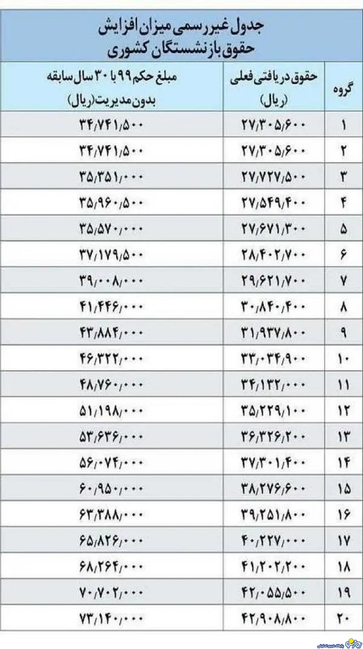 فرمول اعمال اولین مرحله همسان‌سازی حقوق بازنشستگان+جدول