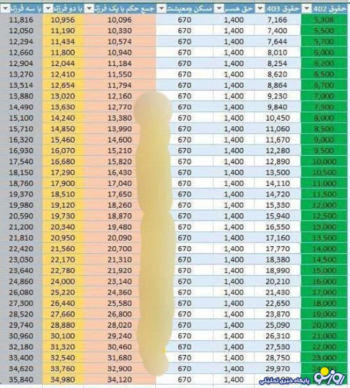 اعلام جدول فرمول محاسبه اضافه حقوق بازنشستگان