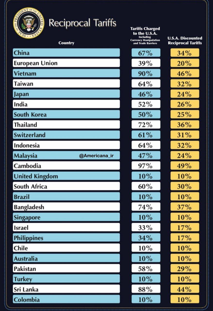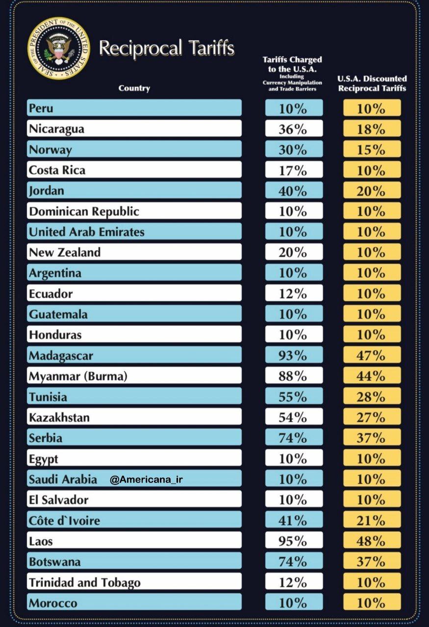 جدول تعرفه‌ای جدید دونالد ترامپ علیه کشورهای جهان