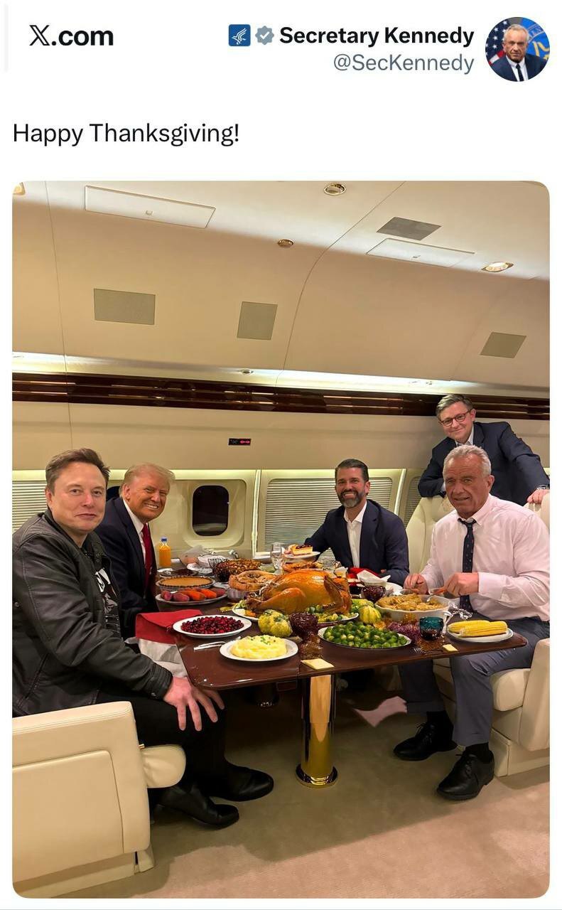روزنو :پس از ماه‌ها گمانه‌زنی درباره روابط پرتنش، بالاخره دونالد ترامپ و ایلان ماسک در یک پرواز اختصاصی به مناسبت جشن شکرگزاری کنار هم نشستند. روایت‌ها حاکی است که این دو چهره جنجالی در آسمان آشتی کرده و بوقلمون سنتی شکرگزاری را با هم تقسیم کردند.